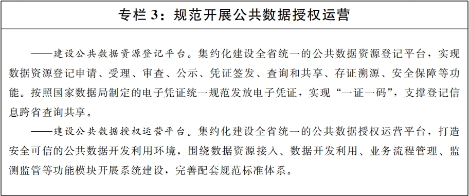 (一)工作目标。2025年,全省公共数据资源开发利用制度规则逐步建立,公共数据资源登记、授权运营平台基本建成,资源供给规模和质量明显提升,数据产品和服务不断丰富,公共数据资源开发利用取得初步成效,培育形成一批生态引领型数据龙头企业和专精特新企业,数据要素作用初步显现。到2030年,全省公共数据资源开发利用制度规则更加成熟,资源开发利用体系全面建成,数据供给规模进一步扩大,数据流通使用合规高效,公共数据在赋能实体经济、扩大消费需求、拓展投资空间、提升治理能力中的要素作用充分发挥。