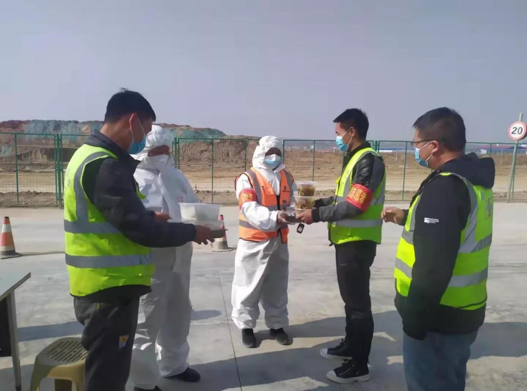 在做好疫情防控工作的同时,监理组成立“两人小组”为坚守在工地出入口的一线防疫人员无偿提供工作餐,用实际行动传递温暖。