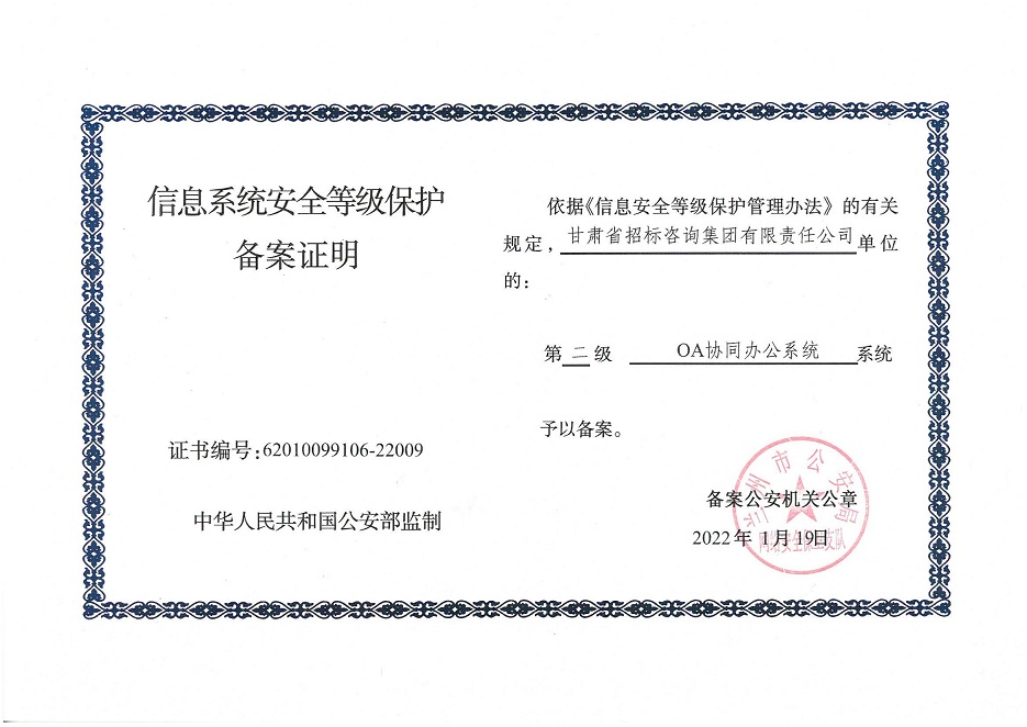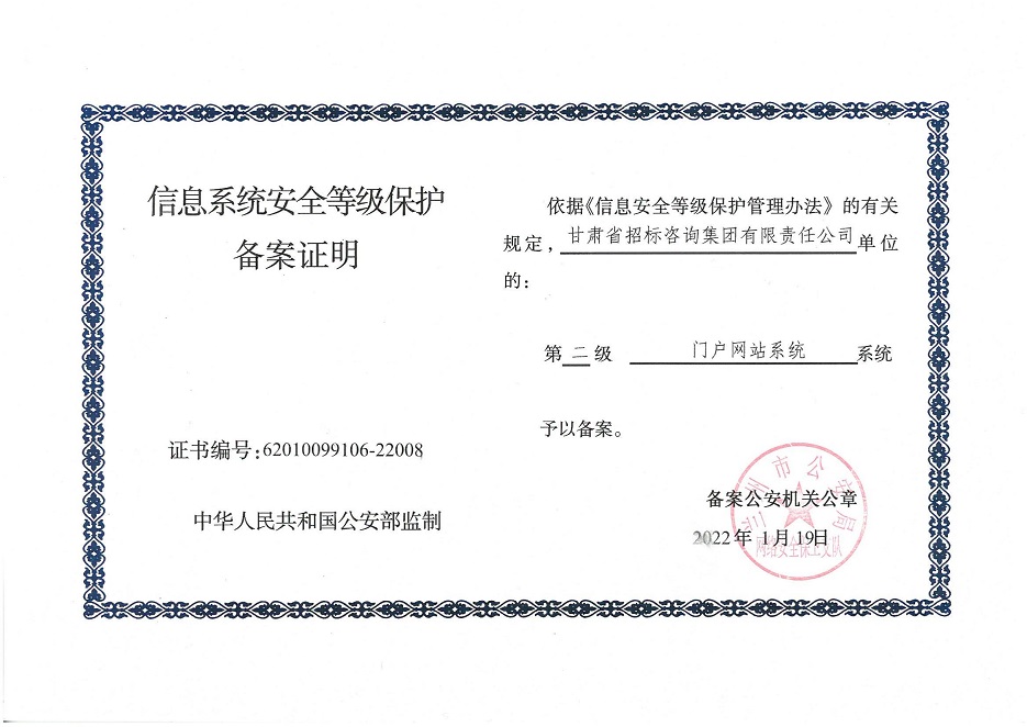 自工作开展以来,相关子公司积极贯彻落实集团公司工作举措,集团本部、建筑设计院、水电设计院、土木工程院、招标咨询集团、交通监理公司合计16个信息系统已顺利完成信息系统安全等级保护2.0测评备案工作,并获得监管部门颁发的《信息系统安全等级保护备案证明》。通过此次等级保护2.0测评工作,集团公司网络和重要的信息数据系统的安全防护和保障能力得到进一步提升,为推动集团公司数字化转型工作打下坚实的基础。