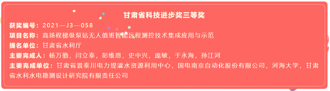 近日,甘肃省人民政府发布关于2021年度甘肃省科学技术奖励的决定,表彰奖励2021年为全省科学技术进步和经济社会发展做出贡献的单位和科技工作者。必一体育参与的“钢管混凝土组合结构体系抗震性能关键技术与应用”“黑河流域中小水电站增效关键技术研究与应用”“高扬程梯级泵站无人值班智能远程测控技术集成应用与示范”等项目榜上有名,分别荣获2021年度甘肃省科技进步奖二、三等奖。