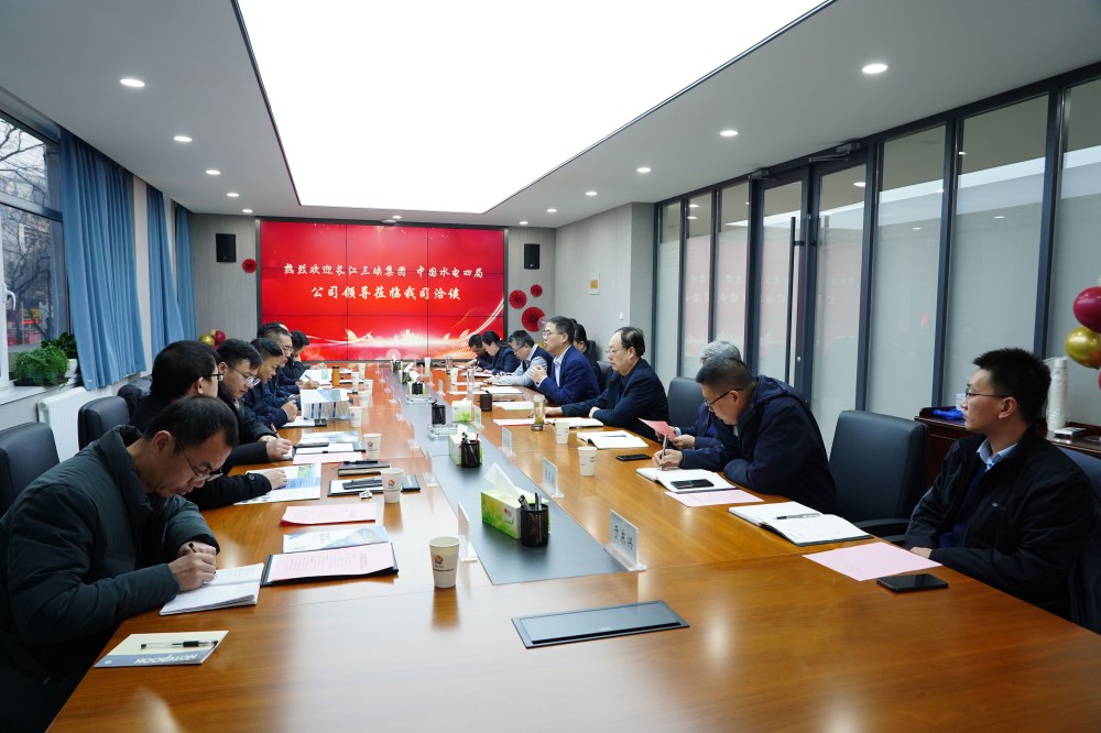 1月18日,中国长江三峡集团甘肃分公司总经理余海彬,中国水电四局投资开发有限公司党委书记、董事长马正斌一行到必一体育交流座谈。集团公司党委书记、董事长马明,党委副书记、总经理张佩峰,党委委员、副总经理成少平参加座谈。