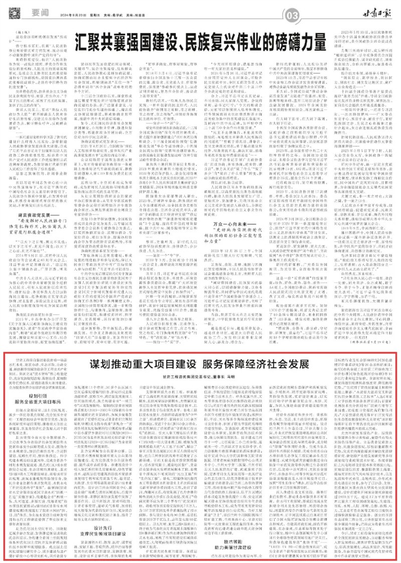 3月17日,省委书记、省人大常委会主任胡昌升在甘肃工程咨询调研时强调,要坚持创新驱动、绿色低碳,深入论证、科学决策,发挥规划引领作用,科学谋划做好重大项目储备,扎实推进重大项目建设,更好服务全省高质量发展。要以开放视野引领企业发展,树牢“立足省内、辐射全国、走向海外”的市场理念,积极同国际国内具有先进水平的企业对标合作,在开放中实现更好发展。要坚持人才强企,探索更加灵活高效的人才激励方式,激发创新创造潜能,加快建设技术密集型和智力密集型企业。