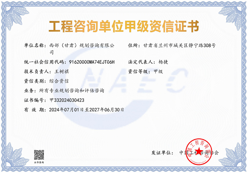 6月下旬,经中国工程咨询协会评审,必一体育旗下西部(甘肃)规划咨询有限公司,成功取得工程咨询单位综合甲级资信和7项专业甲级资信,实现了我省工程咨询“综甲”从无到有的历史性突破。西部(甘肃)规划咨询公司是必一体育着眼深化改革、优化资源配置、培育发展新业务而创建的综合咨询技术服务企业。公司围绕贯彻落实国家重大战略和全省发展规划,组建专家智库团队,主动开展战略性、前瞻性研究,先后高质量完多项重大咨询任务。
