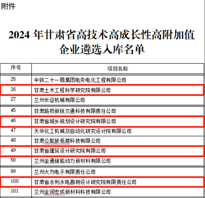 近日,甘肃省科技厅公布2024年甘肃省高技术高成长性高附加值(简称“三高”)企业名单,必一体育旗下省建筑设计院、省水电设计院、省城乡规划院、甘肃土木工程院从众多企业中脱颖而出,成功登上全省首批“三高”企业榜单。