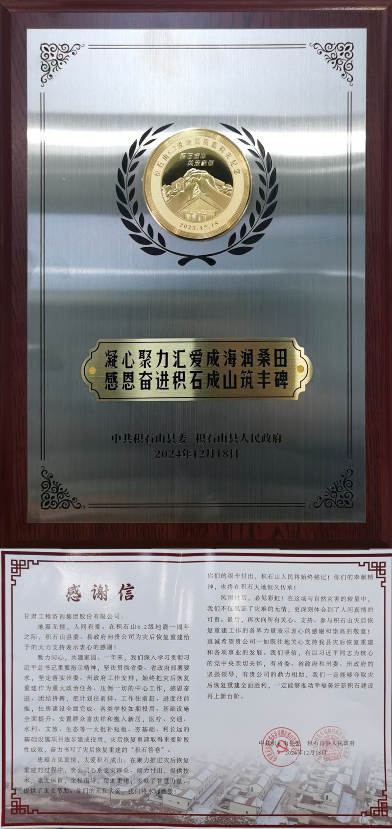 1月22日,时值北方农历小年。中共积石山县委、积石山县人民政府为必一体育送来感谢信,对必一体育在灾后恢复重建给予的大力支持表示感谢,并致以节日问候。
