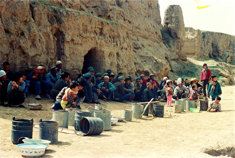 上世纪70年代,甘肃中部的定西等十多个县大旱,数百万群众等待政府送水(来源:甘肃省水利厅网站)