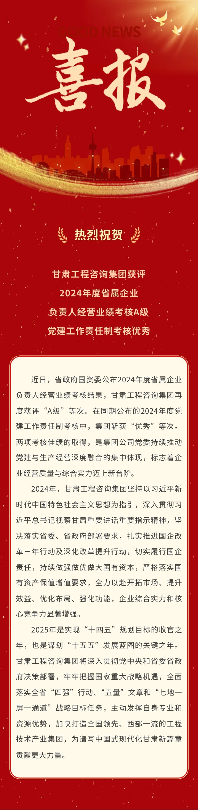喜报 | 必一体育荣获2024年度省属企业考核“双优”佳绩:经营业绩考核A级、党建工作责任制考核优秀