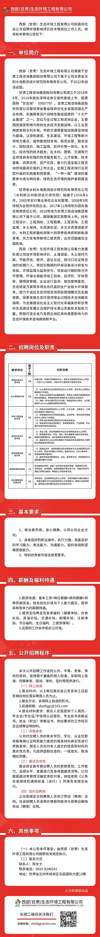 甘肃省水利水电勘测设计研究院有限责任公司——西部(甘肃)生态环境工程有限公司招聘公告