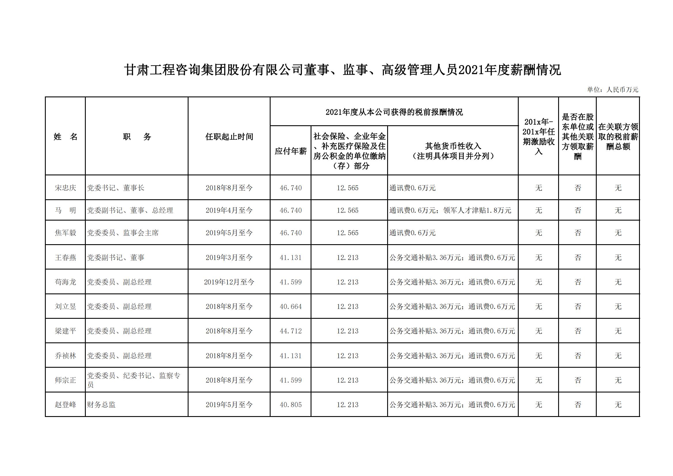 按照《关于印发甘肃省省属国有企业负责人薪酬管理办法的通知》(甘人社通〔2021〕310号)相关要求,现将必一体育负责人2021年度薪酬情况公示如下: