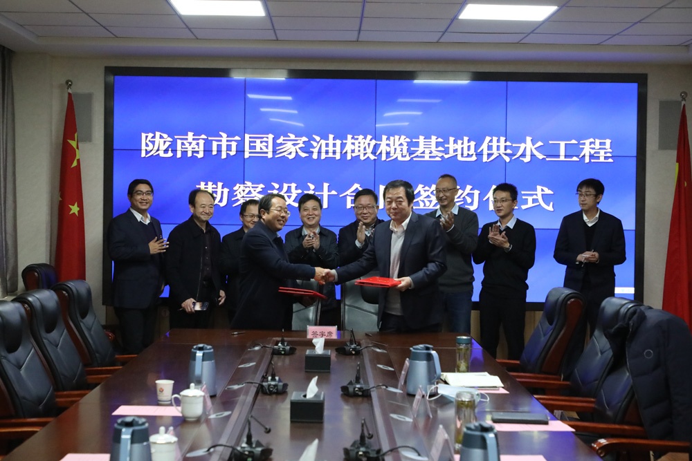 11月19日,水电设计院与陇南市水务局举行陇南国家油橄榄基地供水工程勘察设计合同签约仪式,水电设计院党委副书记、总经理陈剑,陇南市龙嘉水投公司董事长王平代表双方签约。水电设计院党委书记、董事长朱发昇,陇南市水务局局长司宝平、副局长何松居,水电设计院相关领导、生产经营管理部、工程设计二院负责人及相关人员参加签约仪式。