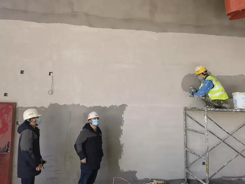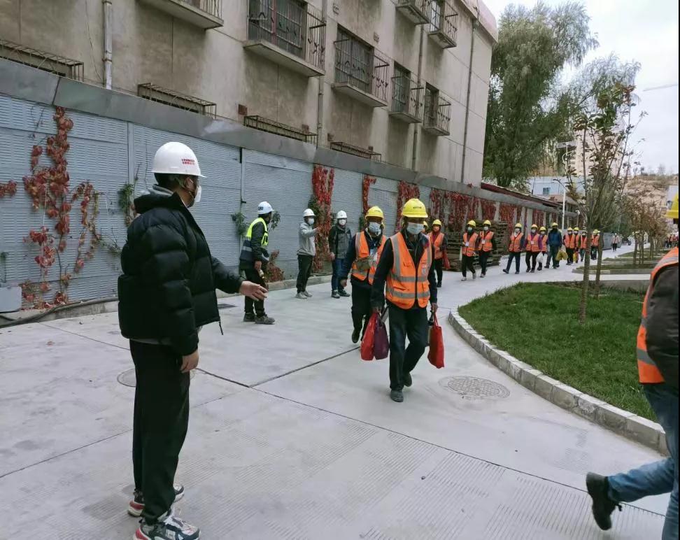 施工现场因劳务人员体量大(高峰值有1300人同时施工)、组织工作难度大、现场需解决的问题较多,监理组负责人张昕朗、总监代表柳晓恩、亢岩多次组织召开专题会议,总结经验,对施工单位疫情防控工作提出具体做法要求和建议:对施工现场进行全封闭式管理,上、下班由各班组负责人带领施工人员列队有序进出现场,回居住点后不得擅自外出;严禁集中或外出就餐,饭食由各班组安排1-2人,统一采购后分发;协助施工单位积极组织工人进行核酸检测,并有序组织各分包单位分批次上下班和就餐;往返工作生活区所有工人穿戴反光马甲,佩戴口罩测量体温;做好疫情期间施工人员的心理疏导工作。