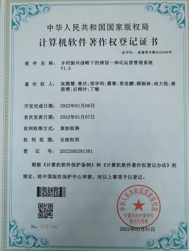 近日,从国家版权局传来好消息,甘肃省建筑设计研究院有限公司自主研发的“乡村振兴战略下的规划一体化运营管理系统V1.0”,获得国家版权局颁发的计算机软件著作权登记证书。