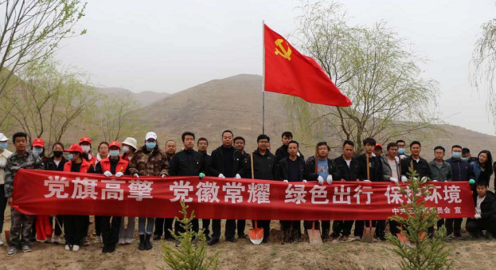 2022年4月,根据王旗镇安排,驻村帮扶工作队员会同其他镇村干部组织群众数十人,在洮河西岸磨沟段开展了以“党旗高擎、党徽常耀、绿色出行、保护环境”为主题的义务植树活动,共栽下4000余棵松树苗,掀起了植树造林的热潮。