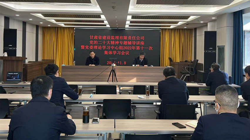 11月8日,甘肃省建设监理有限责任公司召开2022年党委理论学习中心组第十一次集体学习(扩大)会议,邀请省委党校李景铭教授作党的二十大精神专题辅导讲座。会议以“线上+线下”形式召开,党委书记、董事长魏和中主持,领导班子成员、中层干部参加。