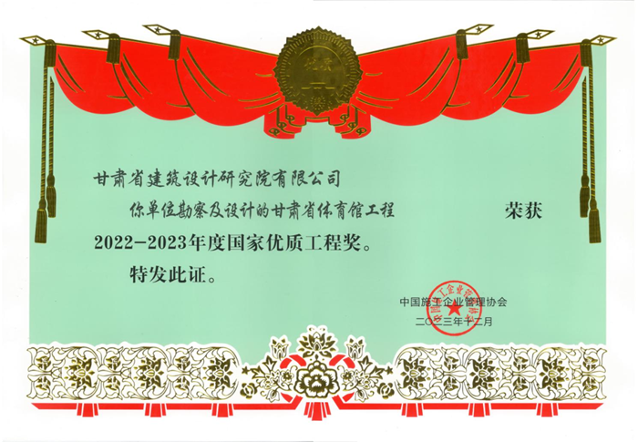 近日,从中国施工企业管理协会传来好消息,由甘肃省工程勘察设计大师、省建筑设计院总建筑师冯志涛带领团队设计的甘肃省体育馆荣获“2022-2023年度国家优质工程奖”荣誉称号。